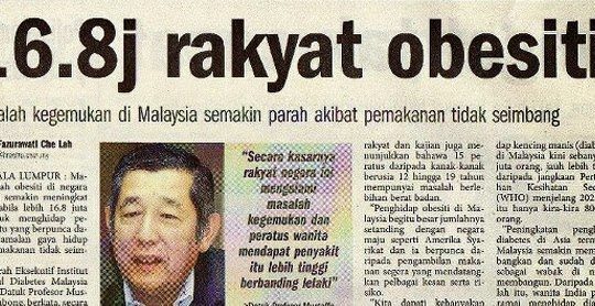 Tahniah Malaysia kerana menduduki tempat pertama dalam kalangan negara-negara di Asia Tenggara yang paling ramai rakyatnya mengalami obesiti dan tempat...
